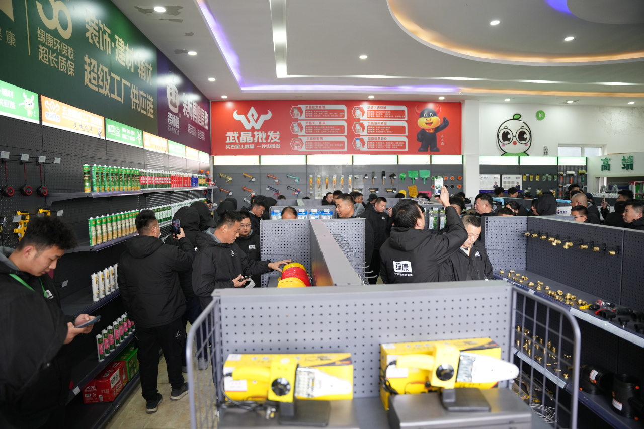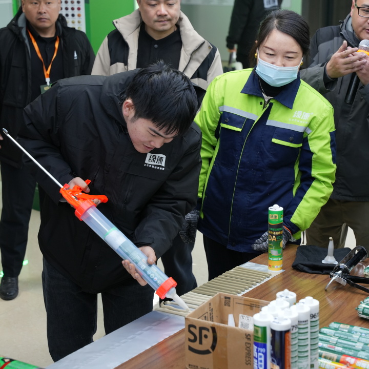 12日清晨,車隊在“綠康財富向導車”引領下駛向生產基地。全自動智能車間內,機械臂有序舞動,生產線高效運轉,生動詮釋綠康智造的“效率革命”與“品質承諾”。隨后參觀的五金展廳與膠粘劑體驗區,則全面展示了綠康打造“一站式裝修輔料平臺”的系統實力。